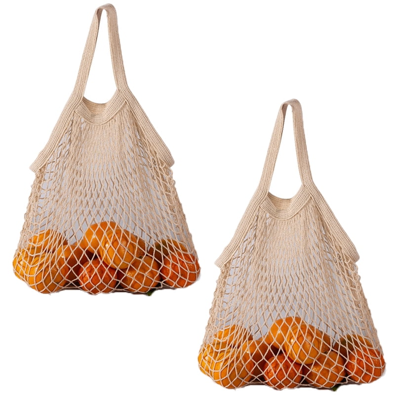 Baywell Premium Mesh Grocery Bags 2 Pieces Reusable Produce Bags Short Handle Net Tote Bags 100 Cotton String Bags Fruit And Vegetable Bags Walmart Com