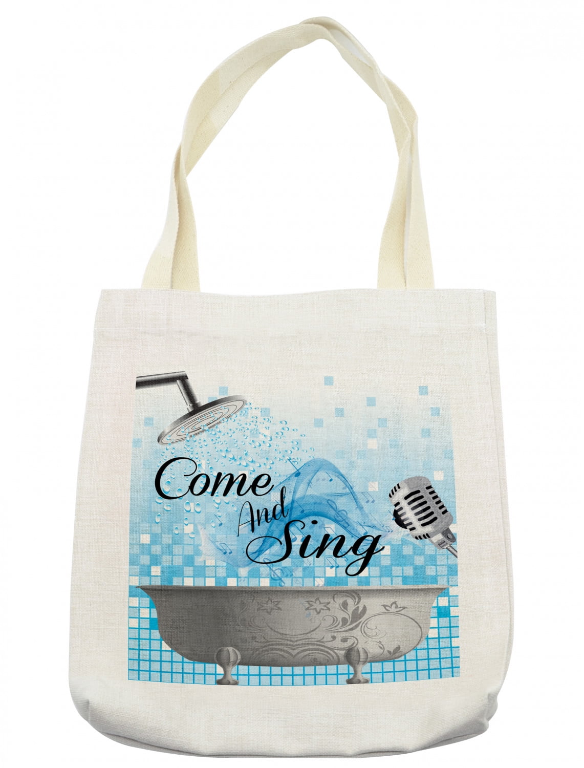 Saying Tote Bag Bath Tub Design With A Come And Sing Message Happy Style Typography Cloth Linen Reusable Bag For Shopping Books Beach And More 16 5 X 14 Cream By Ambesonne